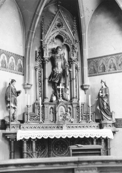 5 autels, chaire à prêcher, 3 confessionnaux, lambris de demi-revêtement