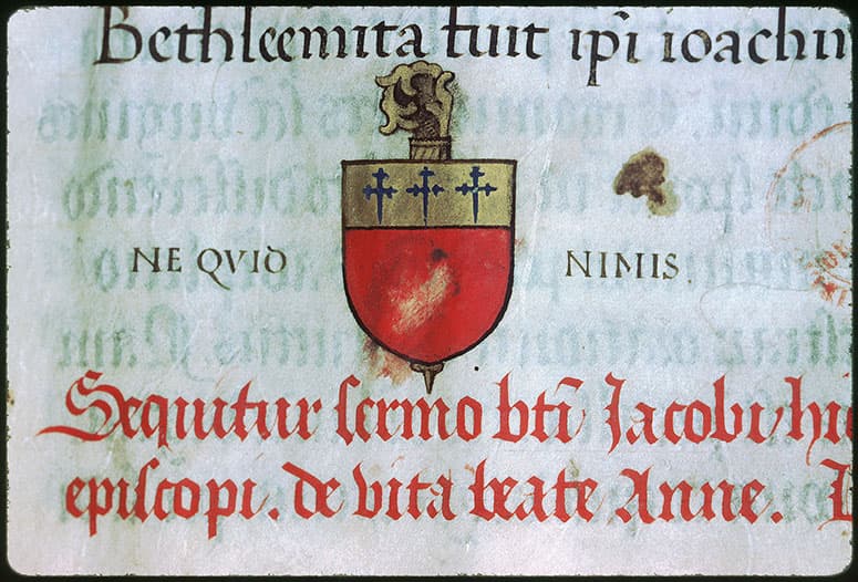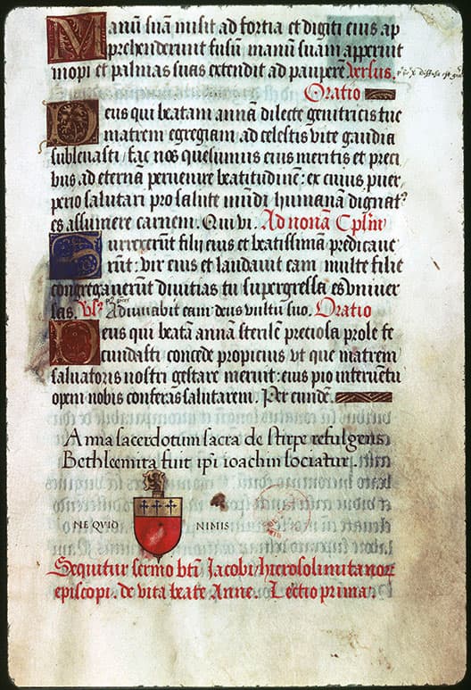 Office de saint Roch;Office de sainte Anne - Page décorée, avec armes (à identifier)