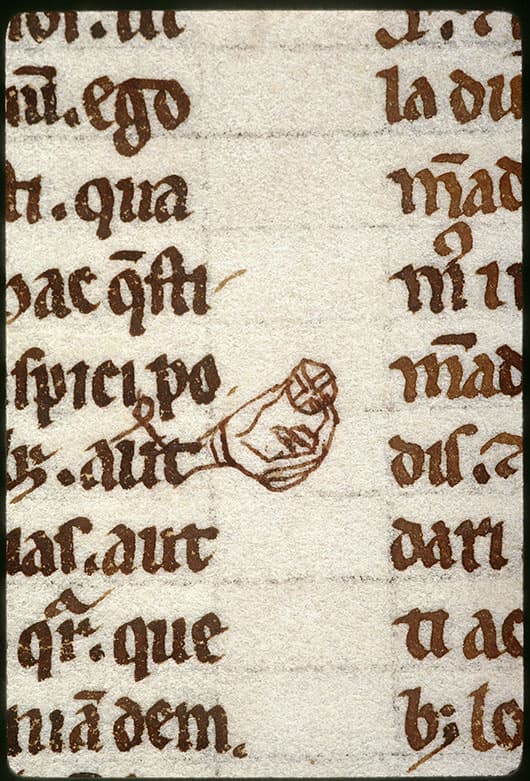 Dessin en marge de la section du Digeste sur l'affranchissement d'esclaves (D. 19, 5, 5).