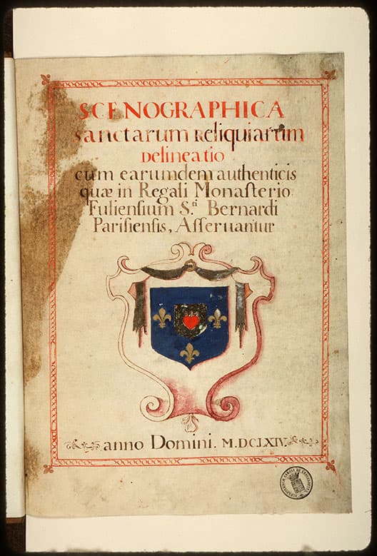 Inventaire des reliques du couvent des Feuillants de Paris - Armes du monastère royal des Feuillants à Paris