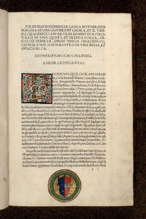 Hypnerotomachia Poliphili - Page décorée, avec armes (à identifier)