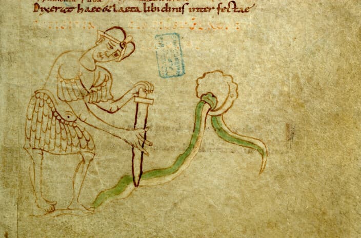 Psychomachia - Chasteté lavant son épée dans le Jourdain