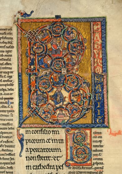 Initiale B du Psaume 1 : registre inférieur