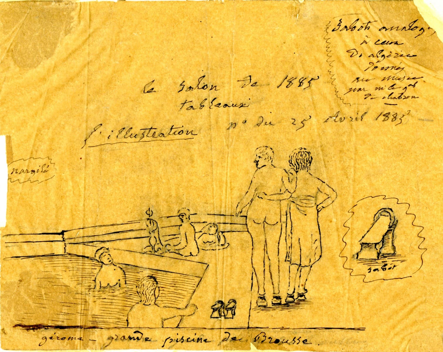 LA GRANDE PISCINE DE BROUSSE ET UN MODELE DE SABOTS ANALOGUE A CEUX QUI FIGURENT DANS LA VITRINE DU MUSEE