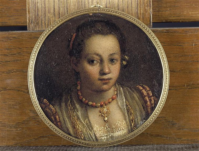 portrait d'inconnu (jeune fille, en buste, de face, bijou, Italien)