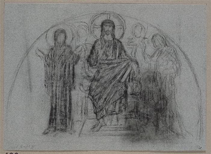 POP | Plateforme ouverte du patrimoineCHRIST TRONANT ENTRE LA VIERGE ET SAINTE GENEVIEVE ET DEUX PERSONNAGES A L'ARRIERE