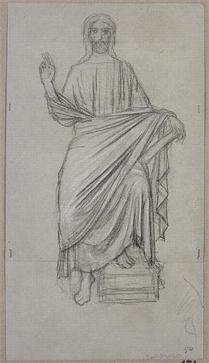 SAINTES GENEVIEVE ET JEANNE D'ARC INTERCEDANT EN FAVEUR DE LA FRANCE AUPRES DU CHRIST QUI DEVOILE A L'ANGE DES GAULES LES DESTINEES, DECORATION INTERIEURE DE L'ABSIDE DU PANTHEON COMMANDEE A HEBERT EN 1874 (?) ET INAUGUREE EN 1884 ; No inv autres éléments : 470
