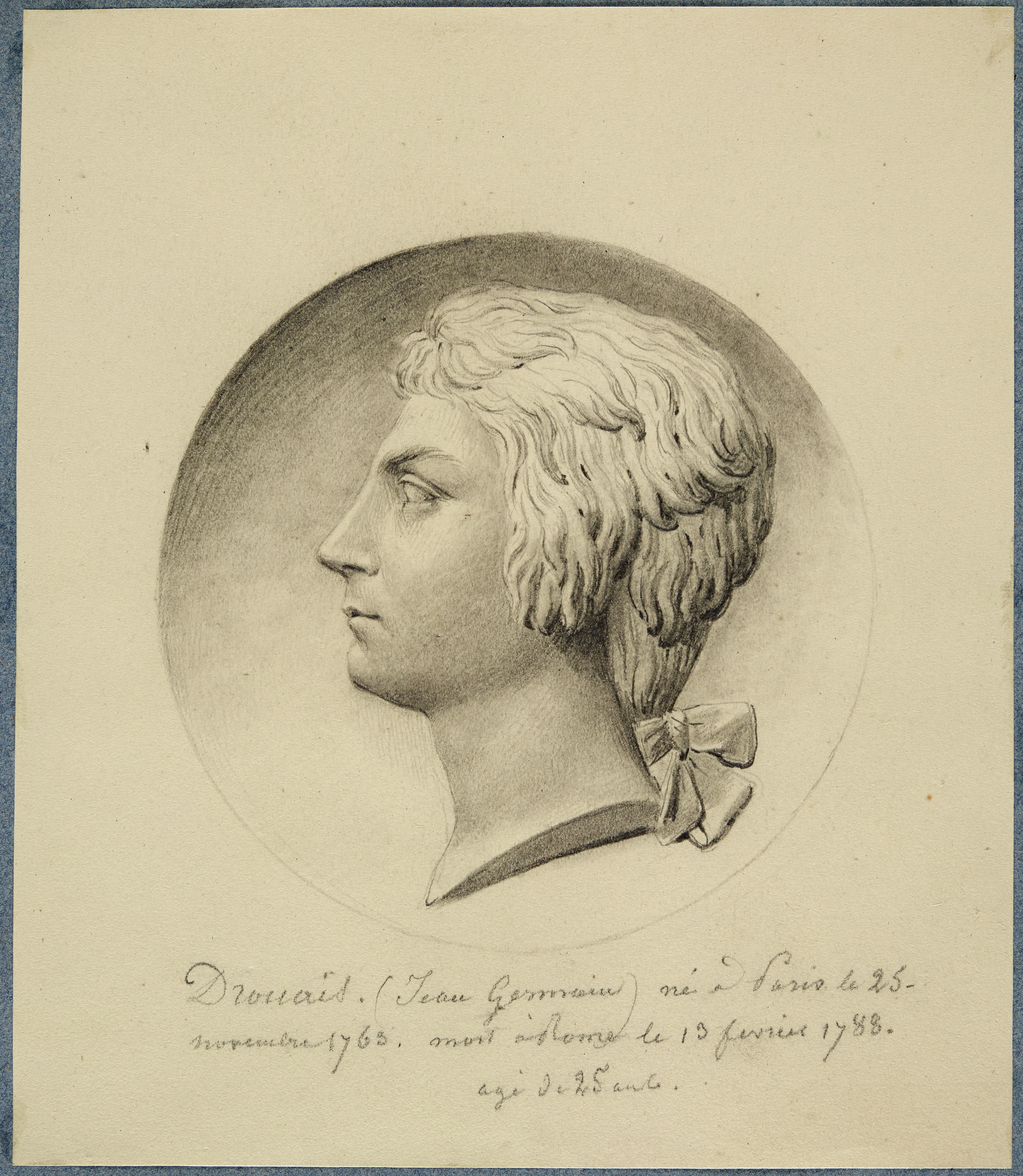 DROUAIS JEAN GERMAIN NE A PARIS LE 25 NOVEMBRE 1763 MORT A ROME LE 13 FEVRIER 1788 AGE DE 25 ANS (B.M. SOUS LE DESSIN, A LA MINE DE PLOMB)