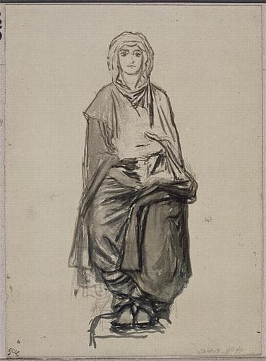 étude pour saintes Geneviève et Jeanne d'Arc intercédant en faveur de la France auprès du Christ qui dévoile à l'ange des Gaules les destinées, décoration intérieure de l'abside du Panthéon commandée à Hébert en 1874 (?) et inaugurée en 1884 ; numéros d'inventaire des autres éléments : 519 ; 521 ; 522