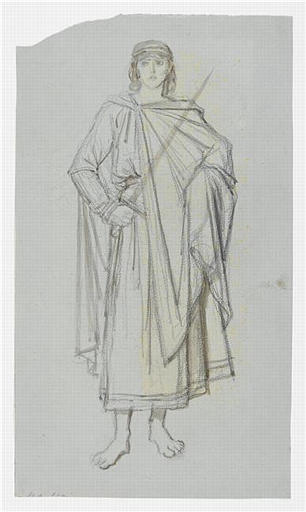 étude pour saintes Geneviève et Jeanne d'Arc intercédant en faveur de la France auprès du Christ qui dévoile à l'ange des Gaules les destinées, décoration intérieure de l'abside du Panthéon commandée à Hébert en 1874 (?) et inaugurée en 1884 ; numéros d'inventaire des autres éléments : 573 ; 574 ; 575 ; 577 ; 578