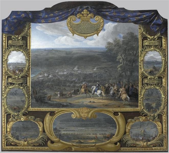 scène historique (bataille rangée, Enghien duc d', Mello Dom Francisco de, état-major, cavalerie, infanterie) ; vue d'architecture (ville, Rocroi, plaine, feuillu) ; vue d'architecture (ville, Thionville) ; plaine ; combat ; plan (état-major, Thionville) ; scène (homme, femme, transport à dos d'animal, âne, chemin) ; scène historique (bataille, Thionville) ; plan (Thionville, ville) ; scène historique (bataille rangée, Thionville) ; vue d'architecture (Sierck-les-Bains, fortification) ; cavalier ; plan (stratégie, Sierck-les-Bains) ; scène historique (guerre de siège)