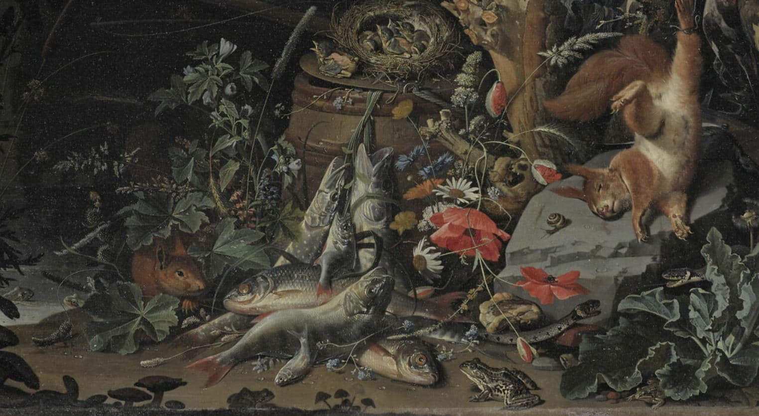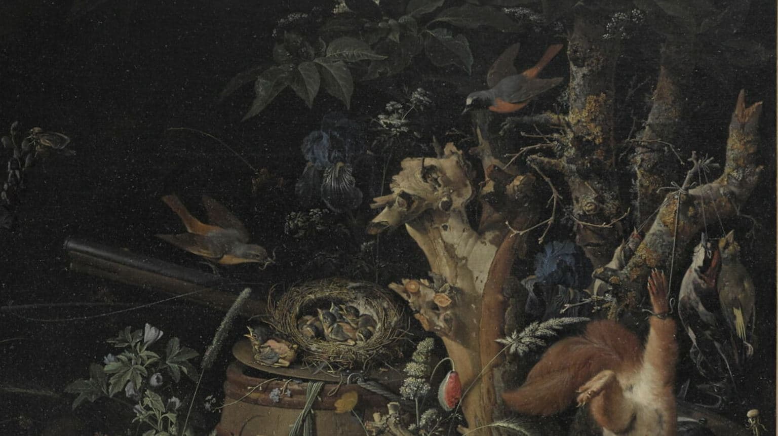 POP | Plateforme ouverte du patrimoineLE NID DE ROUGES-QUEUES A FRONT NOIR. POISSONS, REPTILES ET ECUREUIL MORT AU MILIEU DE PLANTES ET D'ARBRES