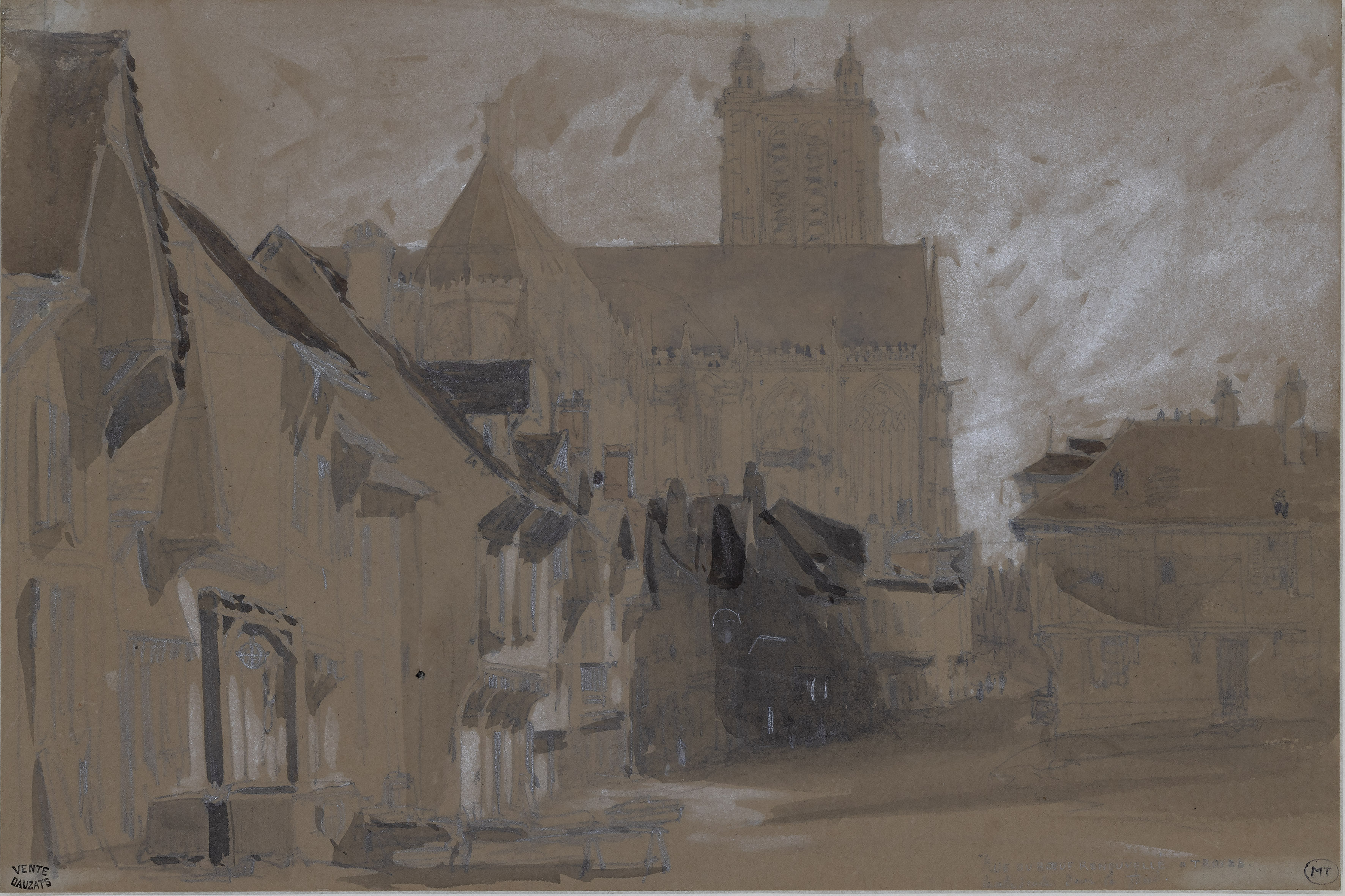 mine de plomb avec rehauts de gouache blanche, de lavis gris et de lavis brun ; acquis par la société académique de l'Aube