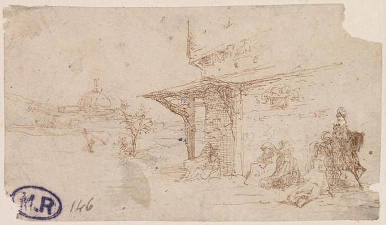 paysage (à l'orientale, cavalier, équestre, cheval, personnage, façade)