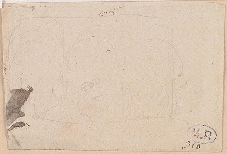 ensemble désassemblé ; étude d'après l'autel de Donatello dans l'église Saint-Antoine de Padoue ? ; fait partie de l'album 2 désassemblé en mars 1930