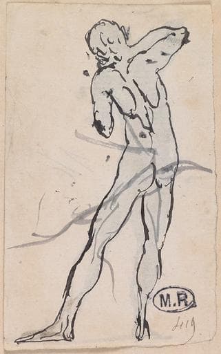 HOMME NU DE DOS, AUX BRAS REPLIES VERS LE VISAGE AU RECTO ; MEME SILHOUETTE AU VERSO