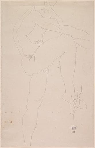 POP | Plateforme ouverte du patrimoineHOMME NU DEBOUT, DE PROFIL A DROITE, BRAS TENDUS, UNE JAMBE LEVEE (LA TETE EST COUPEE PAR LE BORD DE LA FEUILLE)