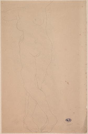 FEMME NUE DE FACE, JAMBES CROISEES (LA TETE EST COUPEE PAR LE BORD DE LA FEUILLE)