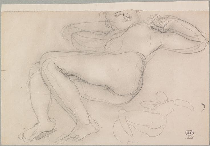 POP | Plateforme ouverte du patrimoineFEMME NUE A DEMI ALLONGEE VERS LA GAUCHE, BRAS ET JAMBES PLIES ; REPRISE DE LA SILHOUETTE EN BAS A DROITE
