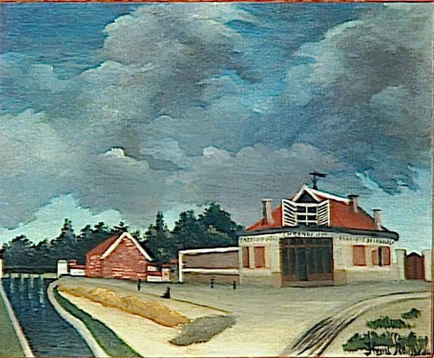 paysage (ciel (orage) ; architecture industrielle ; chemin ; personnage ; Seine)