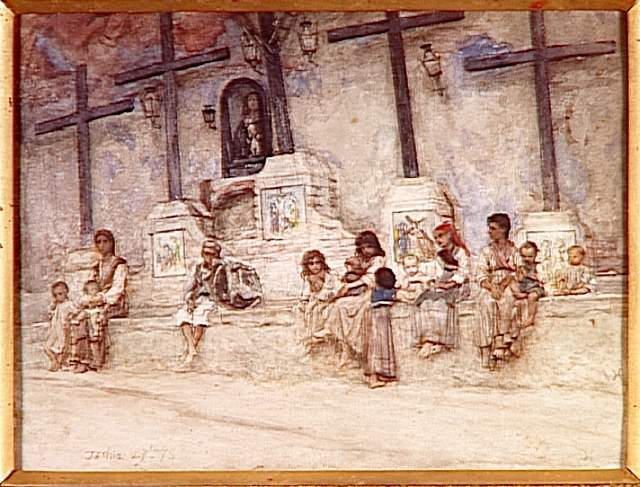 ISCHIA, GROUPE D'ENFANTS AU PIED DU CALVAIRE