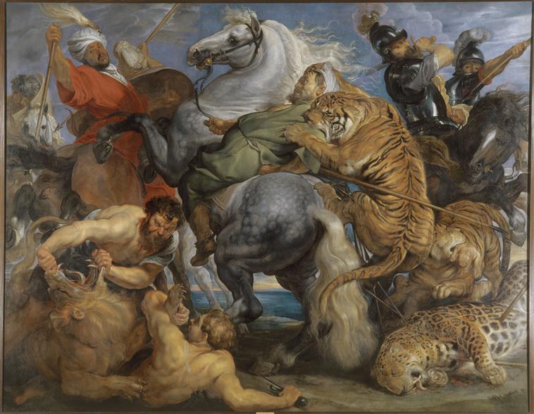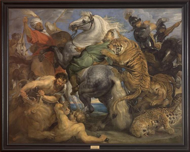 copie d'après un original de la galerie national d'art antique à Rome ; composition très proche de la chasse aux lions, galerie de Dresde ; réplique par Soutman au Wadworth atheneum, Hartford (Connecticut)