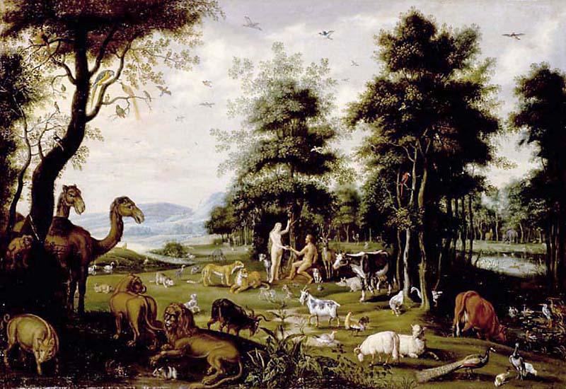 LE PARADIS TERRESTRE ; ADAM ET EVE ET LES ANIMAUX DE LA CREATION