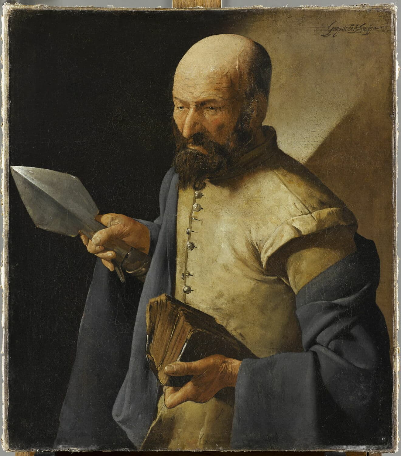 La Tour a peint un autre saint Thomas avec sa lance (vente chez Christie's à Monte-Carlo, juin 1991, no 155) lequel appartient à une série d'apôtres contrairement à celui du Louvre