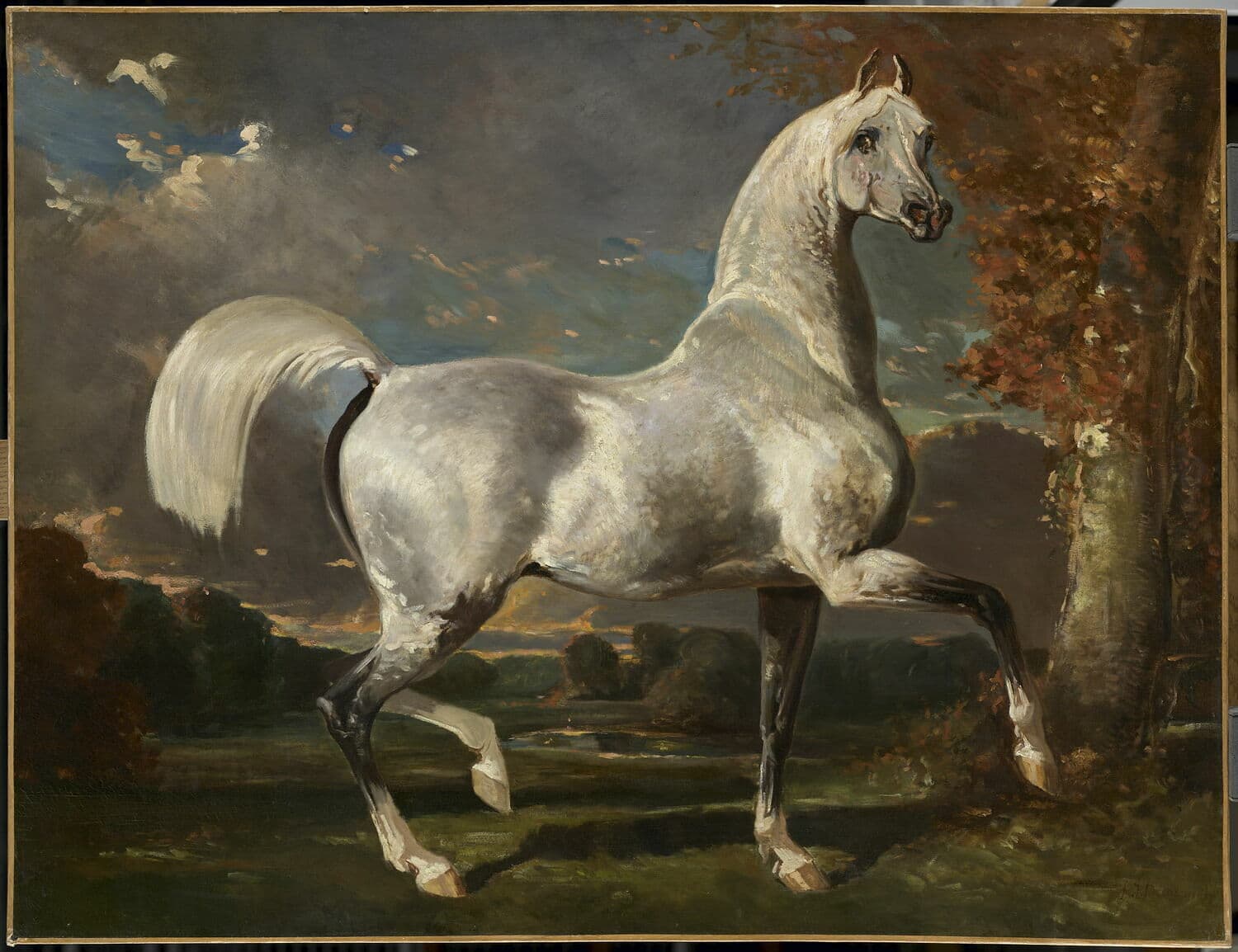 le cadre somptueux et la signature du peintre laissent à penser que le tableau occupait une place non négligeable dans la galerie d'un amateur de chevaux