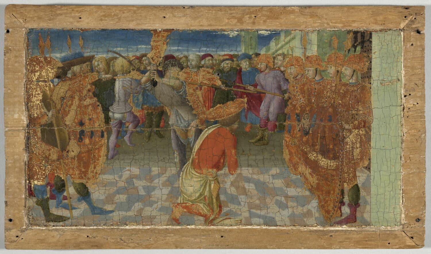 autres éléments de la prédelle conservés au Louvre (RF 1984-156) et à la Pinacoteca Vaticana (Flagellation de saint Barthélémy et Comparution en jugement de saint Barthélémy)