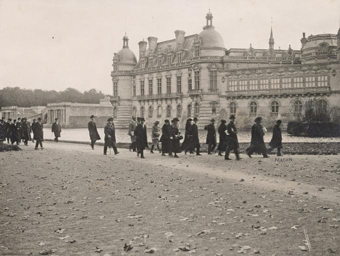 portrait collectif (Macon Gustave, conservateur, homme, moyen de transport ferroviaire, Chantilly, fossé, château)