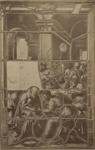 POP | Plateforme ouverte du patrimoineVitrail de la chapelle de Chantilly (annexe sud), provenant de la sacristie de la chapelle d'Ecouen : Circoncision (avant restauration)