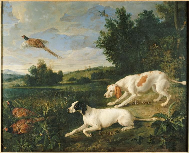 Diane et Blonde, chiennes de la meute de Louis XIV, chassant