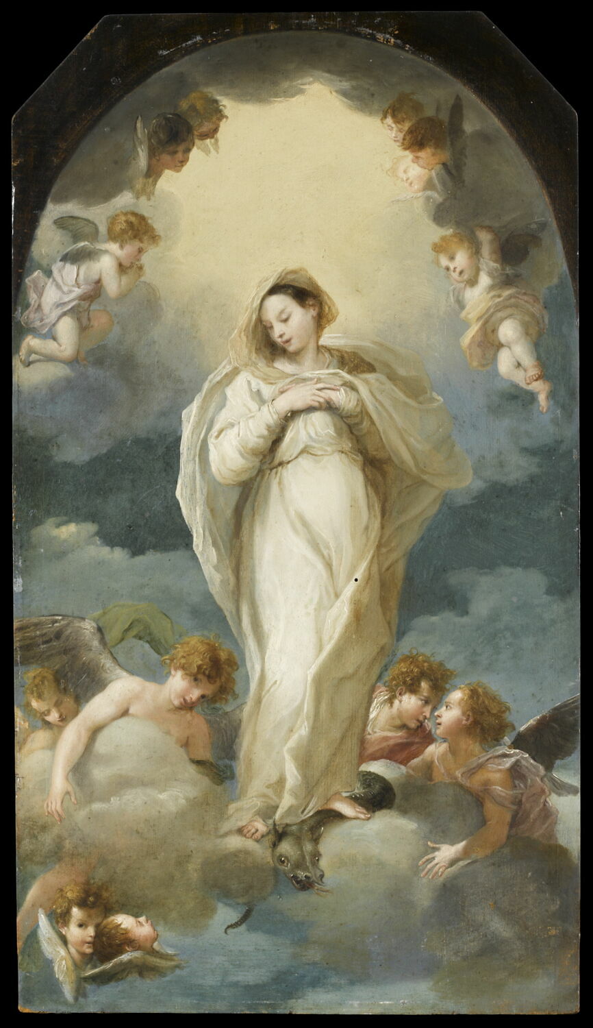 figure biblique (Immaculée Conception, allégorie, foulant aux pieds, dragon, ange)