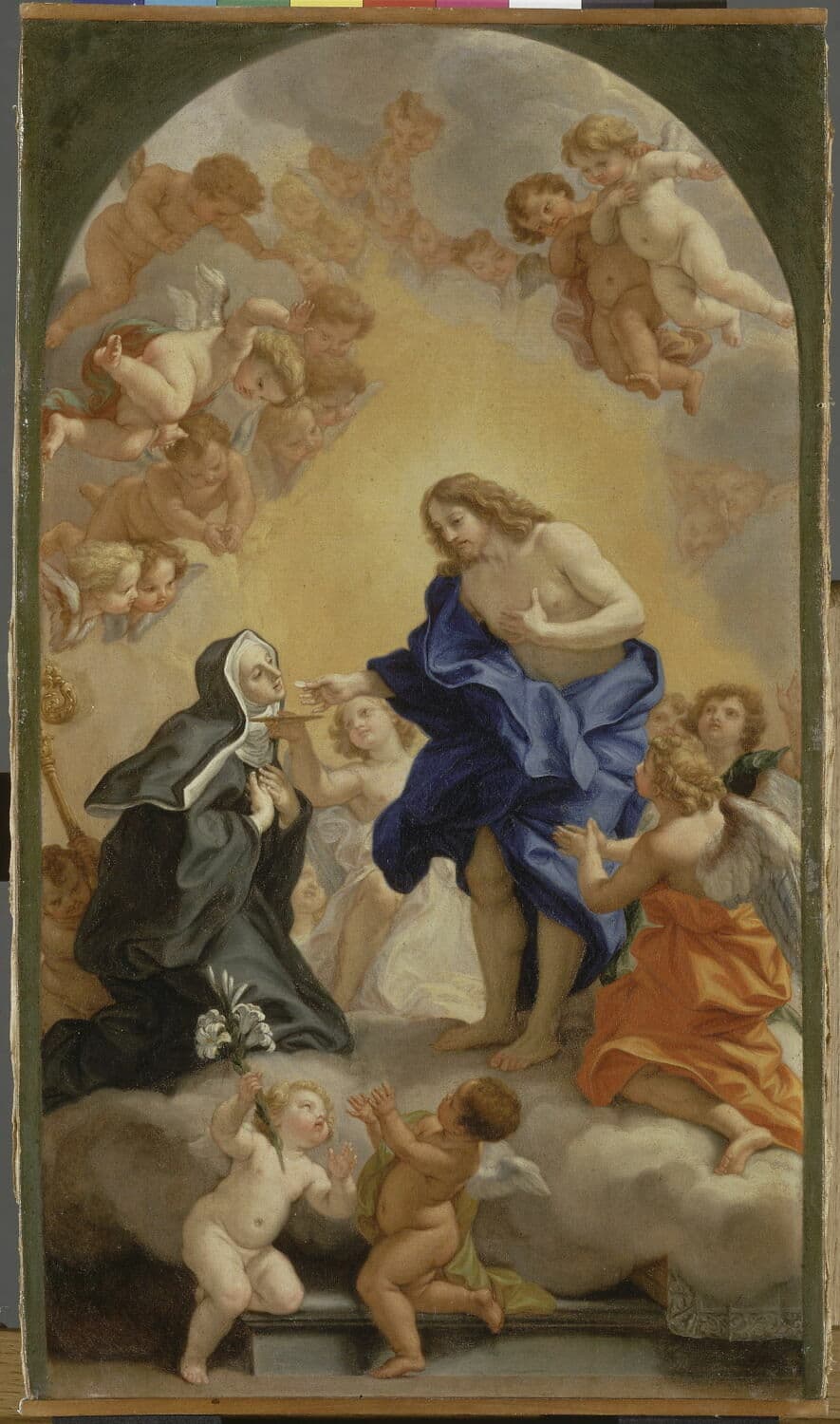 Une bienheureuse abbesse (sainte Gertrude la Grande ?) recevant la communion des mains du Christ