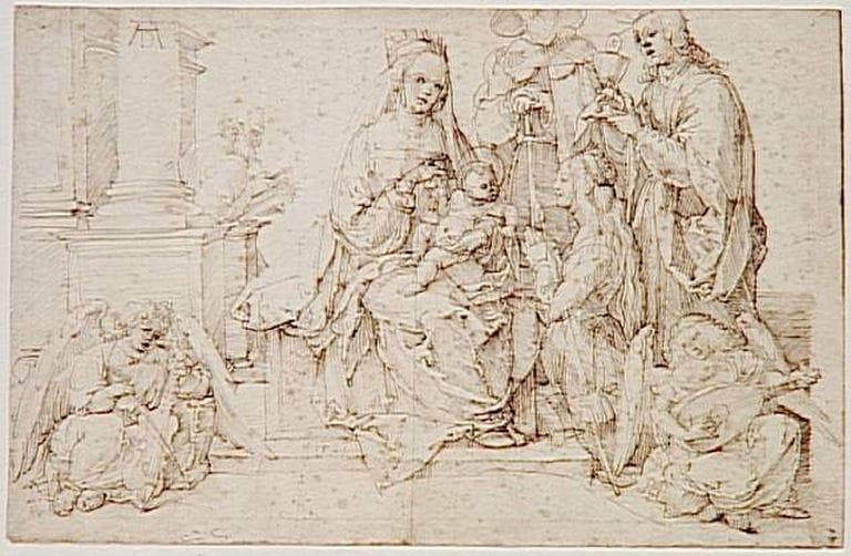 ce dessin est le premier d'une série de six études pour un grand tableau abandonné qui devait avoir pour thème la Vierge à l'Enfant