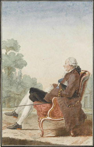 portrait (Lorraine Camille prince de, homme, assis, de profil, fauteuil, épée, ordre du Saint-Esprit, terrasse)