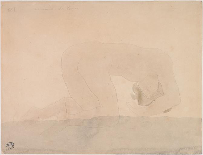 figure (femme : nu, à quatre pattes, de profil, allégorie : naissance : Vénus)