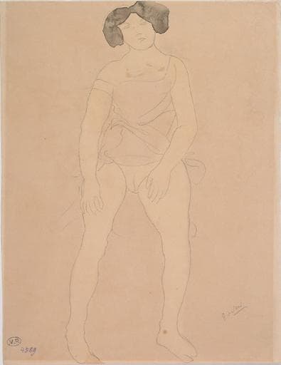 POP | Plateforme ouverte du patrimoineFEMME ASSISE DE FACE, LA CHEMISE RELEVEE SUR LES HANCHES