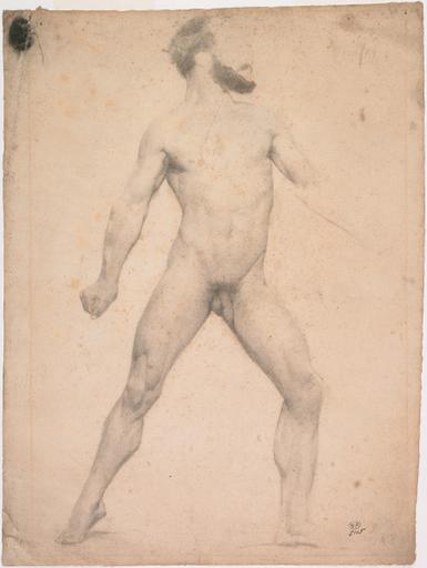figure (homme : nu, en pied, de face, tête : de profil, barbe)