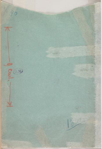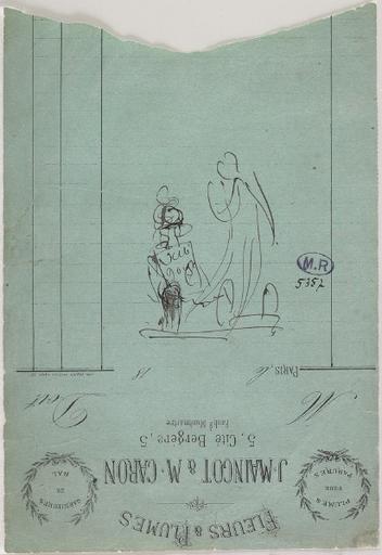 traits à la plume et lavis brun ; papier vert à en-tête de la Maison de fleurs et plumes Maingot et Caron ; déchiré sur les bords