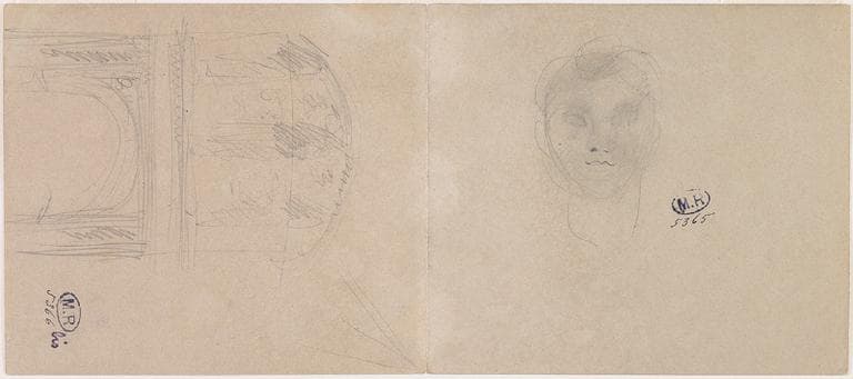 POP | Plateforme ouverte du patrimoinePORTRAIT DE BAUDELAIRE, AU VERSO FACADE DE MONUMENT A AUXERRE ET AUTRE PORTRAIT DE BAUDELAIRE