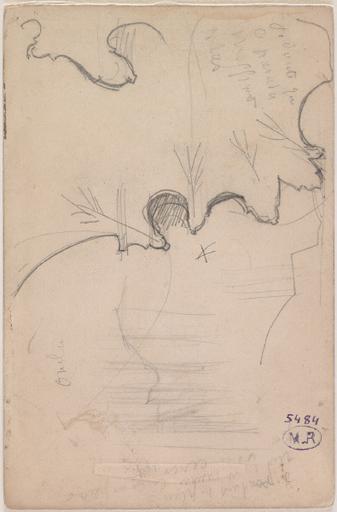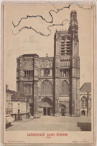 traits à la mine de plomb ; au dos d'une photographie de la cathédrale Saint-Etienne de Sens