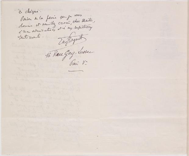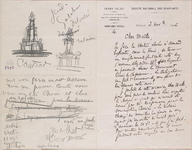 NOMBREUSES ANNOTATIONS A LA MINE DE PLOMB AU REVERS D'UNE LETTRE D'EUGENE RAQUET A RODIN ; L.1915 A