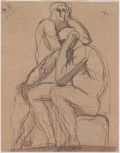 groupe de figures (homme : nu, accoudé : homme : nu, assis, de profil)