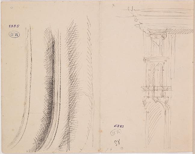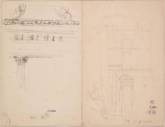 POP | Plateforme ouverte du patrimoineENTABLEMENT A ANCY-LE FRANC, ?, ET FACADE DU CHATEAU DE SAINT GERMAIN EN LAYE ?, AU VERSO A L'ENVERS, MOULURES ET SUPERPOSITION DE NICHES ET DE PILASTRE SUR UNE ARCATURE A REIMS, ?