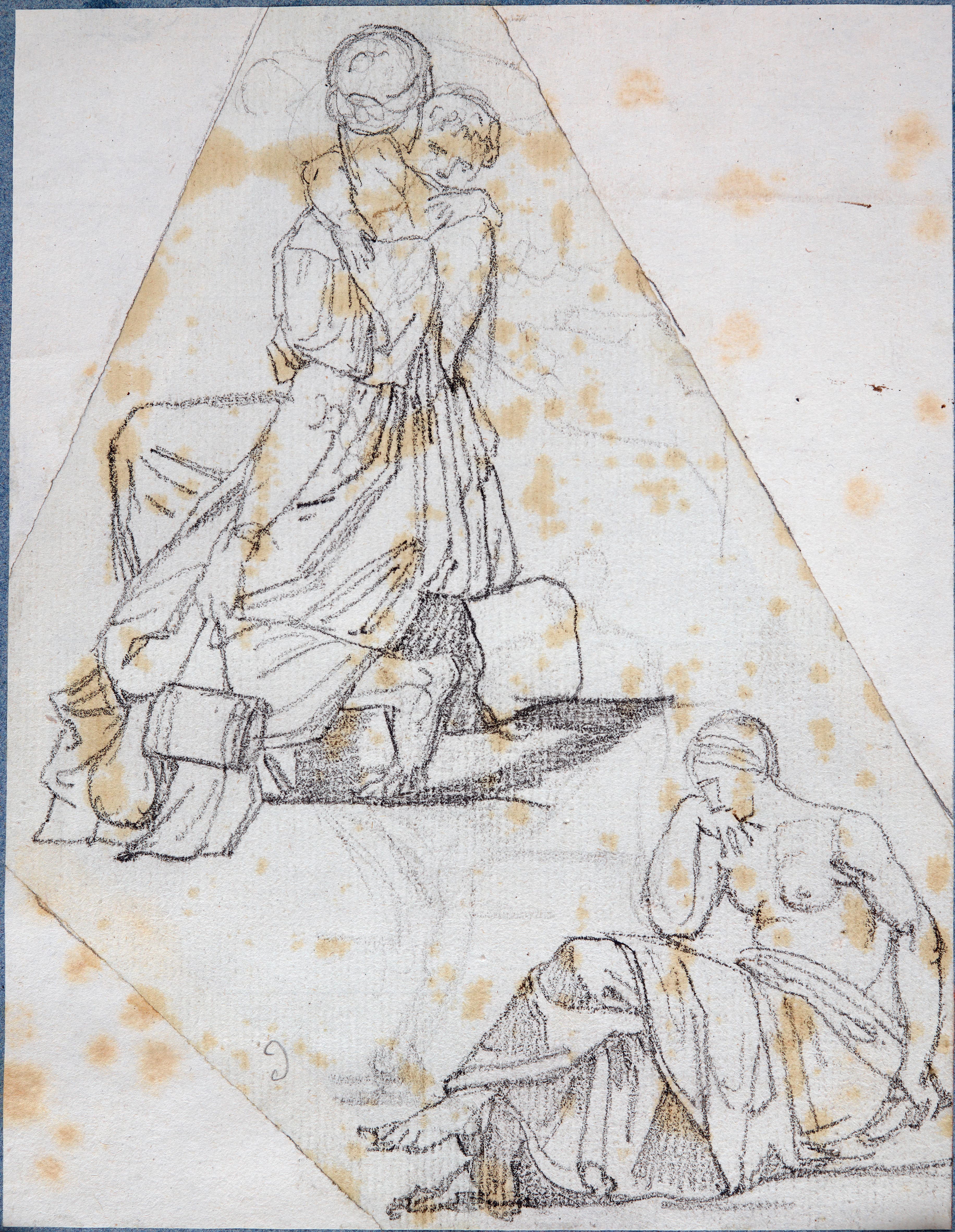 LA FEMME ASSISE DE PROFIL EST D'APRES UNE FIGURE AU CENTRE ET AU PREMIER PLAN DE LA GRAVURE DE VAN THULDEN D'APRES LES TRAVAUX D'ULYSSE, DECOR DE PRIMATICE A FONTAINEBLEAU ; No inv autres éléments : DE 74.73.1 à 74.73.836