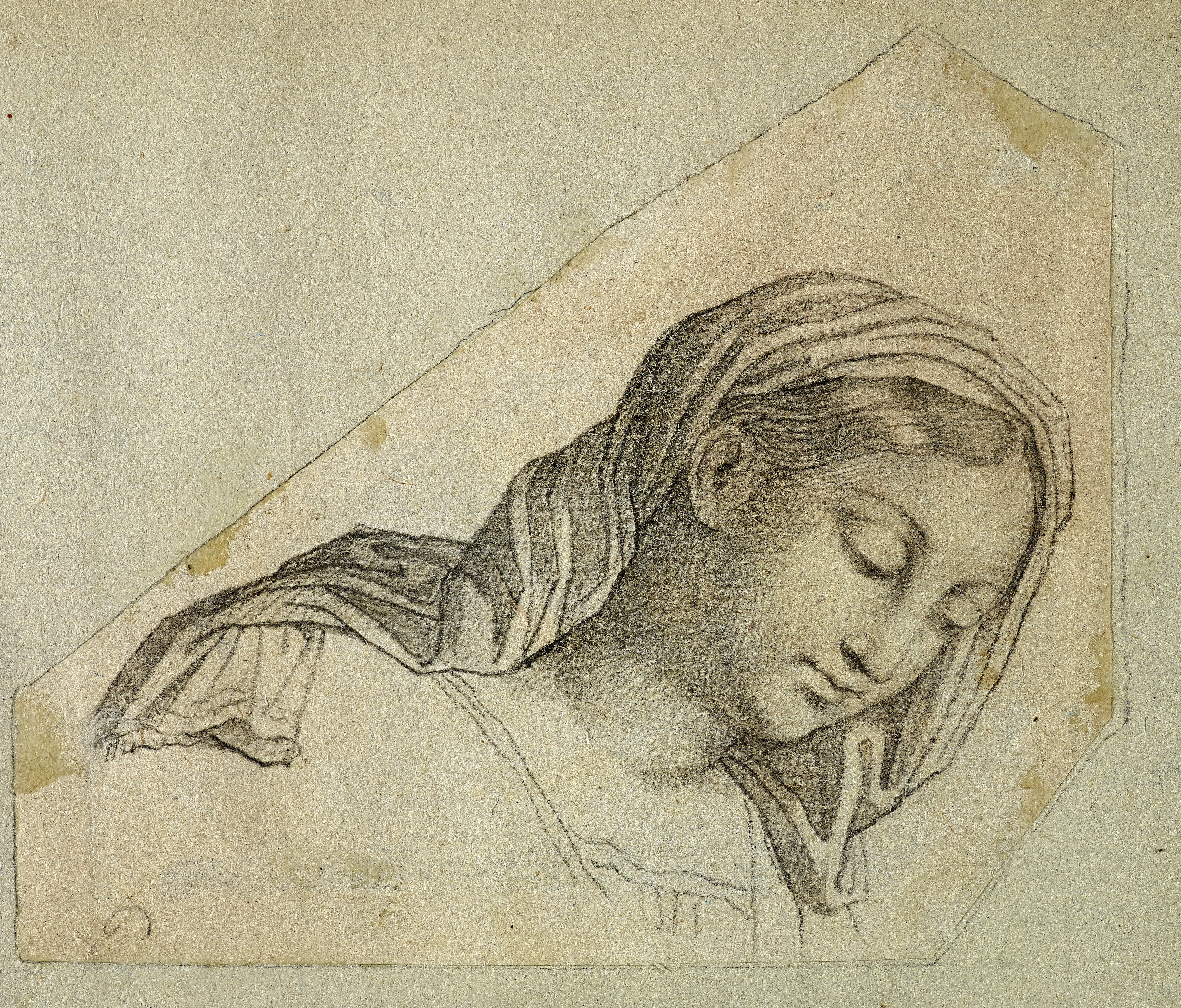 figure biblique (Vierge, tête, de trois-quarts, voile)