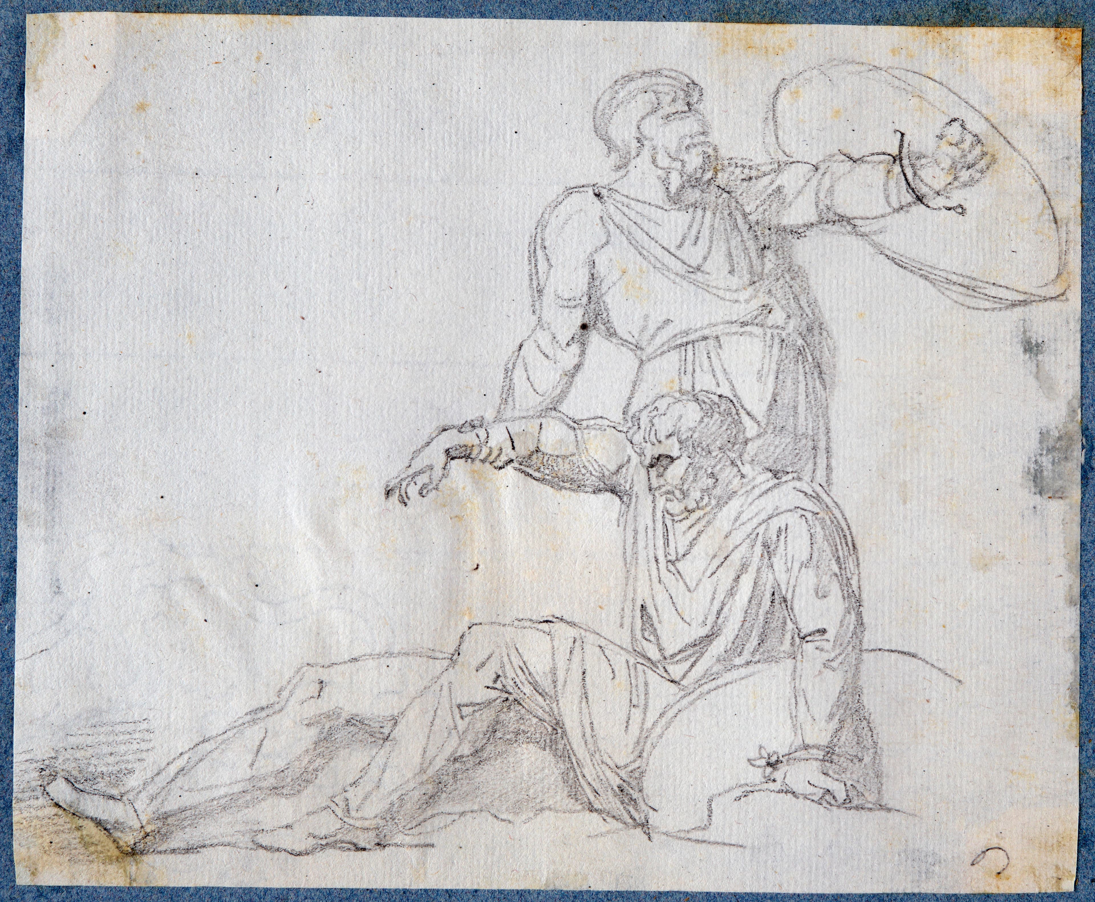 DETAIL D'UNE GRAVURE REPRESENTANT UN MOTIF DE LA COLONNE TRAJANE, LE COMBAT DES DACES ET DES ROMAINS, DANS L'ANTIQUITE EXPLIQUEE DE MONTFAUCON ; No inv autres éléments : DE 74.73.1 à 74.73.836