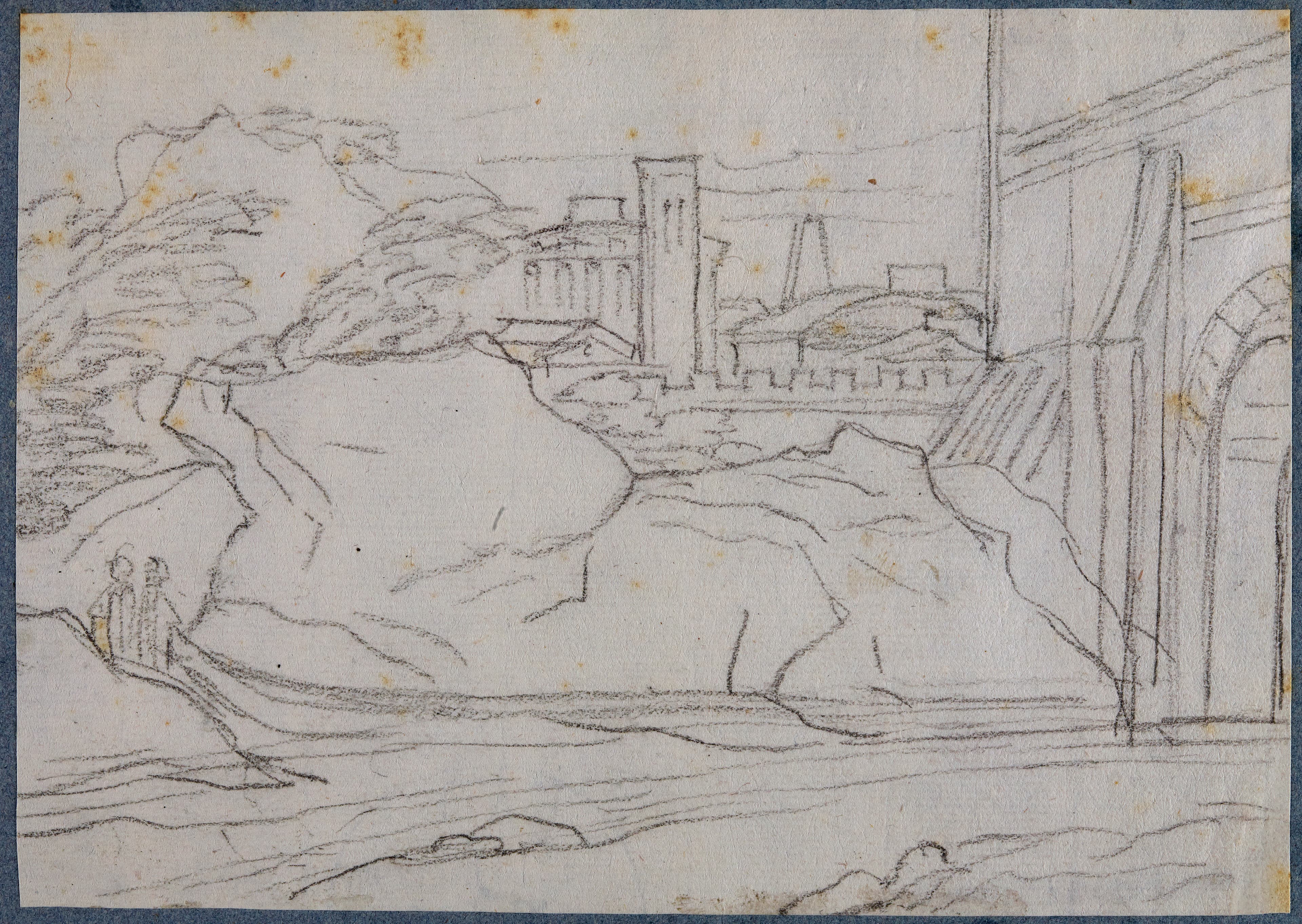 POP | Plateforme ouverte du patrimoinePaysage avec une porte et au loin une ville